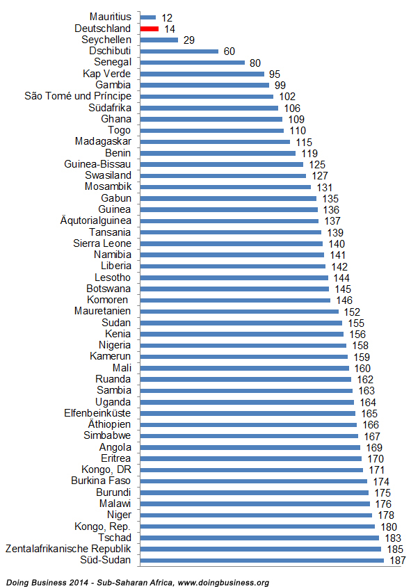 Handelsvereinfachungen werden für Unternehmen im internationalen Wettbewerb immer wichtiger. Die Weltbank hat 189 Länder unter die Lupe genommen und untersucht, wo Unternehmern die Ein- und Ausfuhr von Gütern per Seetransport am einfachsten gemacht wird. Von den Ländern Subsahara-Afrikas liegt Mauritius bei diesem Ranking sogar noch vor Deutschland.